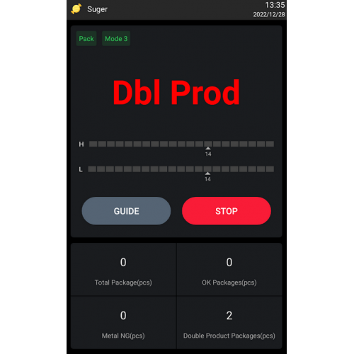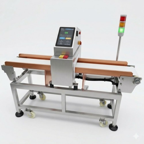 Rejection system: Audible with red light warning alarm, belt stopped automatically.