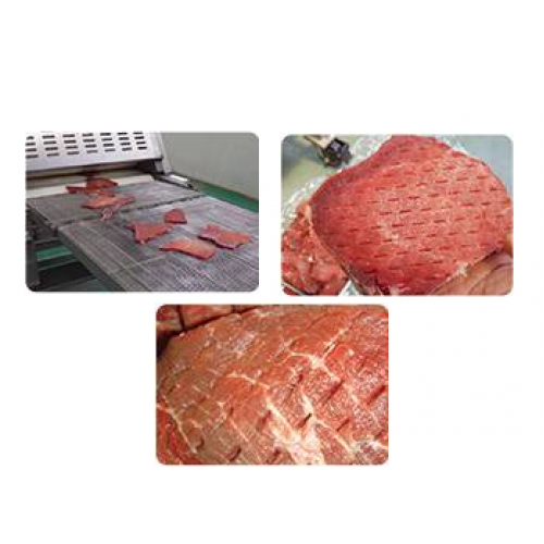 The Meat Tendering Machine applies the mechanical method to cut the meat gently with two groups of sharp tooth-like multi-cutters while also damaging the connective tissue, tendons, and ligaments. This allows for the salt water to be immersed into the meat fiber, which can shorten the rolling time, make the structure of the meat perfect, and prevent product from shrinking by frying or toasting the products.